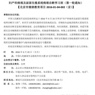 中国人民解放军总医院病理科定于2016年4月23日举办“妇产科病理及泌尿生殖系统病理诊断学习班”。本次学习班将从临床实用的角度出发,详细而全面地讲授两大系统有关疾病的诊断及鉴别诊断新进展。会议将邀请沈丹华教授、刘从容教授、董颖教授、刘爱军教授以及刘梅教授分别讲解子宫内膜疾病、妊娠滋养细胞疾病、卵巢上皮性囊肿、生殖细胞肿瘤及乳腺肿瘤等妇产科及乳腺病理学;邀请石怀银教授、郭爱桃教授、王湛博教授分别讲解肾、膀胱等泌尿系统疾病病理学并分享有关精彩病例;同时还将邀请王海屹教授针对两大系统常见肿瘤影像学与临床病理联系进行专题授课。