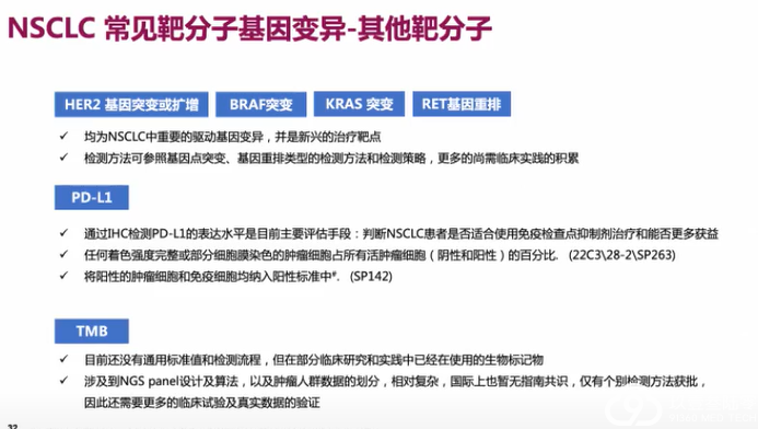 随着少见基因异常的不断发现以及靶向药物获得性耐药机制的完善,临床对基因检测的内涵提出来了更多的需求。免疫治疗尤其是抗PD-1/PD-L1抑制剂的发展也显著改善了部分NSCLC患者预后,如何筛选免疫治疗潜在获益人群成为新的挑战。