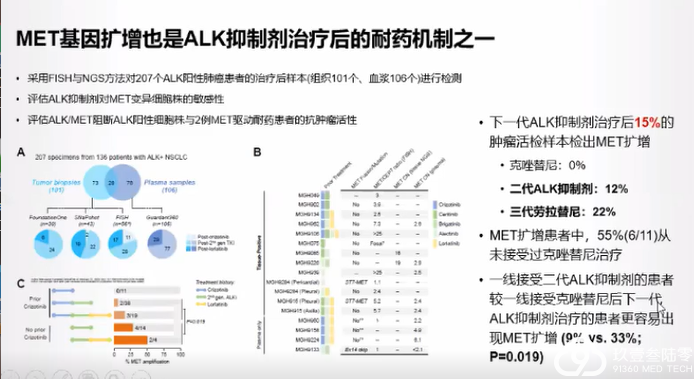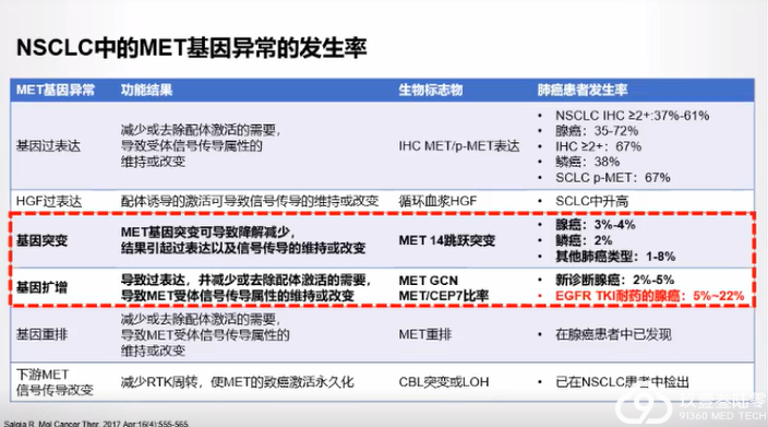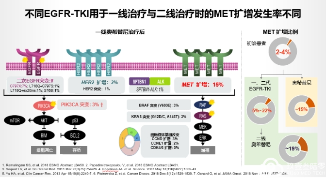 c-MET扩增在接受过一、二代和三代EGFR-TKI治疗晚期EGFR突变患者的发生率分别为5%-22%和~19%。