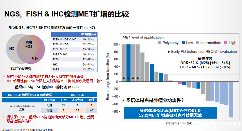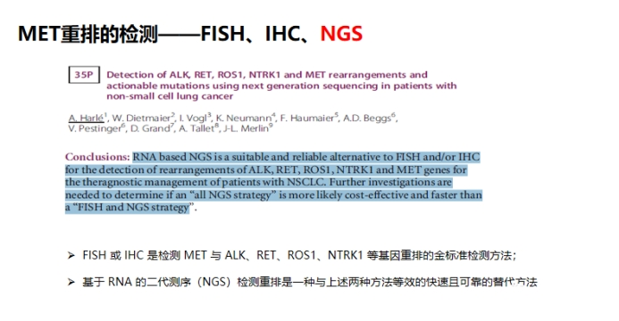 FISH、NGS、IHC都可以用于MET扩增的检测,其中组织FISH是扩增检测的金标准。