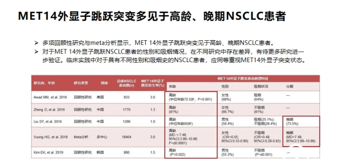 Awad等对933例非鳞状非小细胞肺癌分析,有28例鉴定出MET外显子14突变。