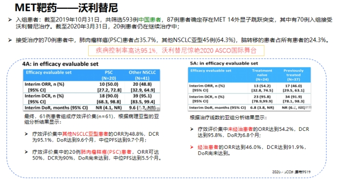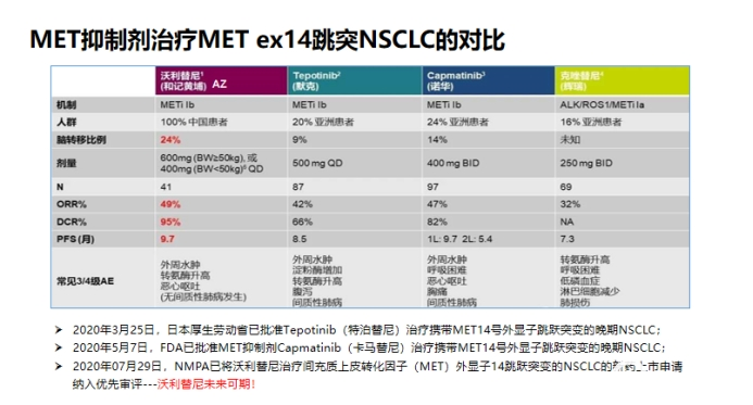 沃利替尼单药治疗既往全身性治疗失败或无法接受化疗的MET外显子14跳变NSCLC患者,显示出颇具前景的的抗肿瘤活性及可接受的耐受性。