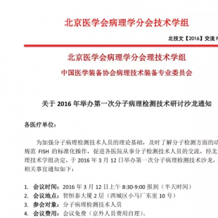 关于2016年举办第一次分子病理检测技术研讨沙龙通知