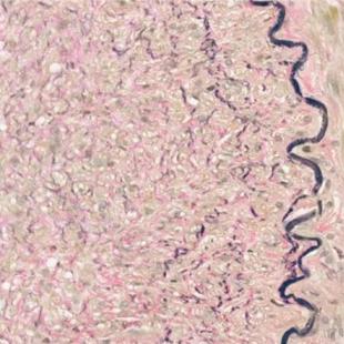 弹力纤维(Elastic fiber)又名黄纤维,主要分布于人体的皮肤、肺、动静脉、结缔组织以及韧带、弹性软骨中,尤以大动脉和肺最常见。在病理过程中,很多疾病都会引起弹力纤维的显著变化。因此,通过观察组织内弹力纤维有无增生或断裂,有助于对包括血管疾病、弹力纤维瘤、肺癌、以及一些与弹力纤维变化有关的皮肤疾病在内的多种疾病进行辅助诊断。