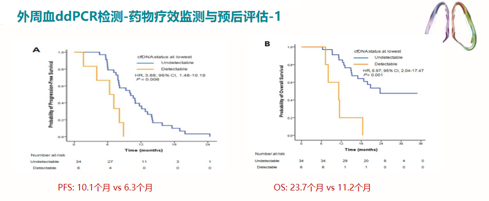 2、数字PCR在实体肿瘤领域,基于ctDNA指导的MRD评估,外周血ddPCR检测可以早于临床影像学发现PD患者,并在预测疾病的疗效和复发等方面具有较高的灵敏度和特异性,实时动态检测,可以监测TKI的疗效。当突变含量升高,提示可能出现耐药,需要进一步进行分子分析,并根据检测结果及时调整治疗策略。